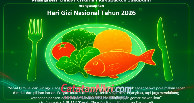 Hari Gizi Nasional Keluarga Besar Dinas Perikanan Kabupaten Sukabumi Mengucapkan Selamat Memperingati Hari Gizi Nasional Tahun 2026 KARTU UCAPAN, News, Perikanan|January 25, 2026January 31, 2026by admin CatatnNKRI.com,- Sukabumi, 25 Januari 2026 – Dalam semangat Sukabumi Mubarokah yang menjiwai gerak