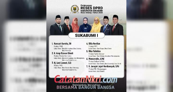 CatatanNKRI.Com,- Sukabumi – Setiap lingkungan memiliki cerita, kebutuhan, dan harapan yang berbeda. Untuk itu, Anggota DPRD Kabupaten Sukabumi kembali turun langsung ke masyarakat melalui Reses Masa Sidang I Tahun 2026 yang digelar pada 4, 5, dan 6 Februari 2026 di masing-masing Daerah Pemilihan (Dapil).