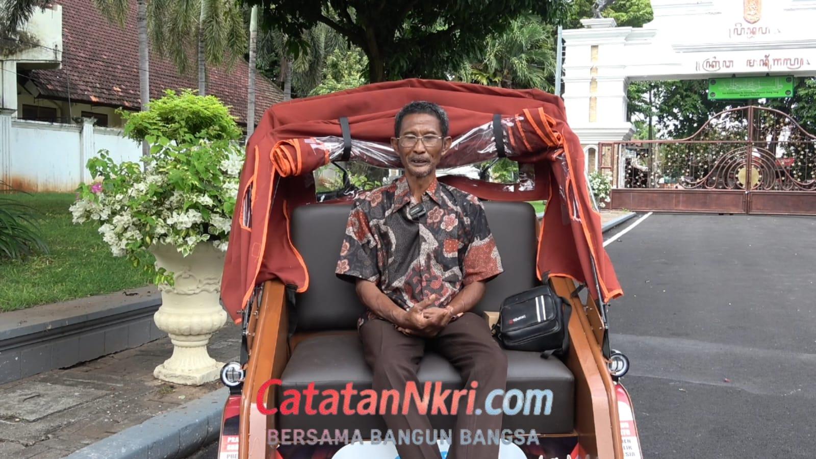CatatanNkri.com, , Tuban – Sepenggal doa tulus terucap dari Bejo Waluyo (58), penarik becak lansia asal Tuban, Jawa Timur. Ia adalah satu dari ratusan penarik becak yang menerima bantuan becak listrik dari Presiden Prabowo Subianto. Dalam balutan rasa syukur, Bejo berharap pemimpinnya senantiasa peduli pada masyarakat kecil.