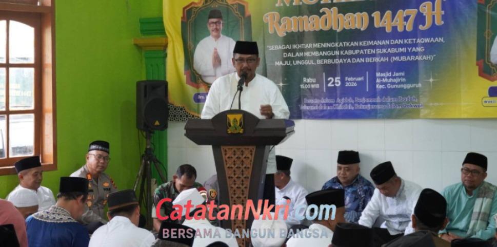 catatannkri.com, Sukabumi, – Dalam suasana penuh kehangatan Ramadhan, Bupati Sukabumi H. Asep Japar bersama Wakil Bupati H. Andreas menyambangi Masjid Jami Al-Muhajirin, Kampung Ciburial, Gunungguruh, Rabu (25/2/2026). Agenda yang dikemas dalam Muhibah Ramadhan ini bukan sekadar silaturahmi, melainkan juga wadah menyampaikan capaian pembangunan sekaligus mendengar aspirasi warga.