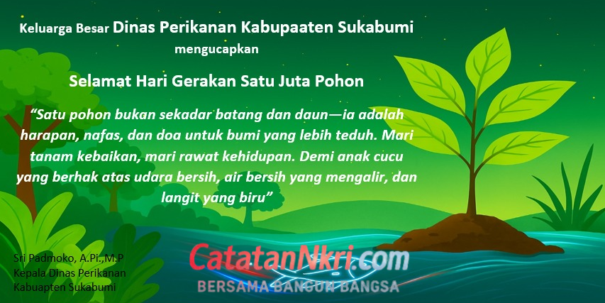 CatatanNKRI.com, – Sukabumi, 10 Januari 2026 – Dalam semangat Sukabumi Mubarokah yang menjiwai gerak pembangunan daerah, Keluarga Besar Dinas Perikanan Kabupaten Sukabumi menyambut Hari Gerakan Satu Juta Pohon dengan penuh harapan dan komitmen. Momentum ini bukan sekadar ajakan menanam, tetapi panggilan untuk merawat bumi sebagai warisan hidup bagi generasi mendatang.