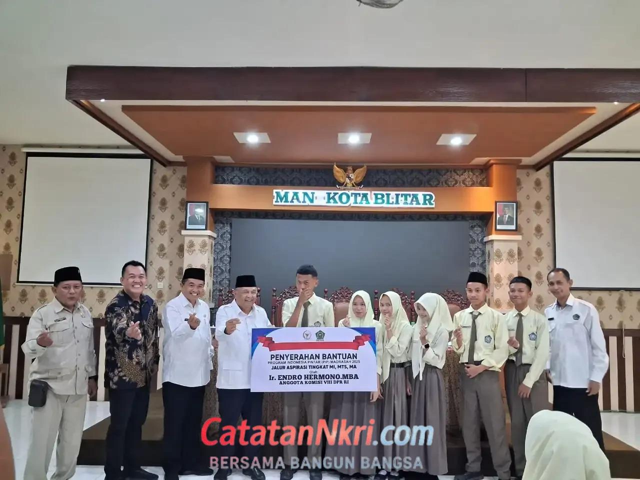 Catatannkri.com,- Blitar — Anggota Komisi VIII DPR RI Fraksi Partai Gerakan Indonesia Raya (Gerindra) Endro Hermono bekerja sama dengan Kementerian Agama Republik Indonesia menyalurkan bantuan Program Indonesia Pintar (PIP) kepada peserta didik Madrasah Ibtidaiyah (MI) dan Madrasah Aliyah (MA) dari keluarga miskin dan rentan miskin di Kota Blitar.