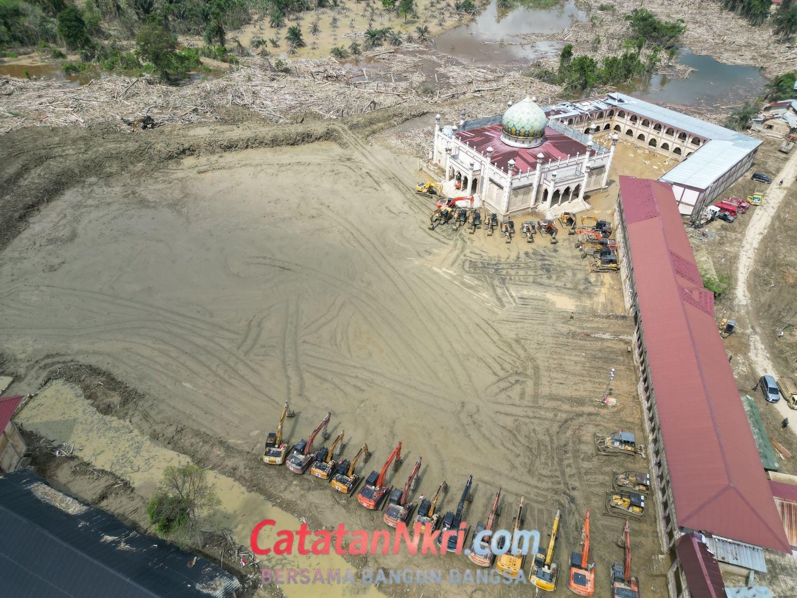 Deretan alat berat yang selama ini bekerja tanpa kenal lelah, siang dan malam di bawah minimnya penerangan, kini terparkir rapi—menandakan misi pembersihan utama telah tuntas.