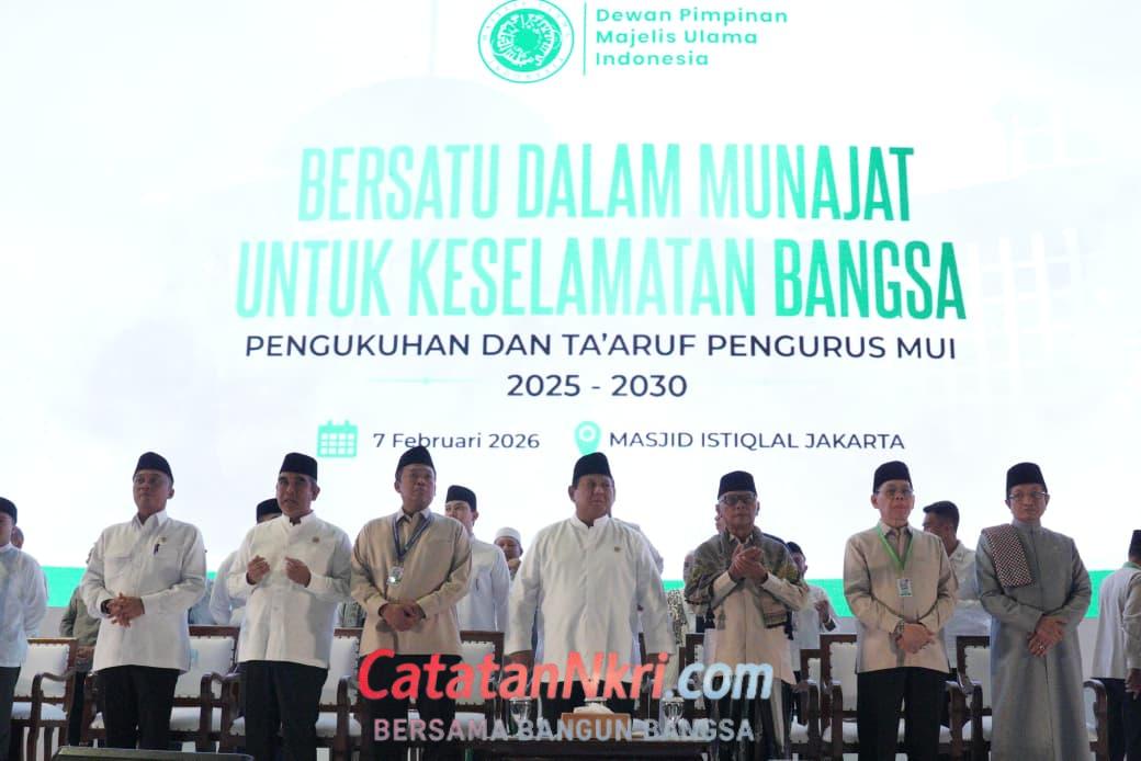 Prabowo menegaskan bahwa pengukuhan pengurus MUI ini menjadi simbol penting persatuan antara ulama dan umara dalam membangun bangsa.