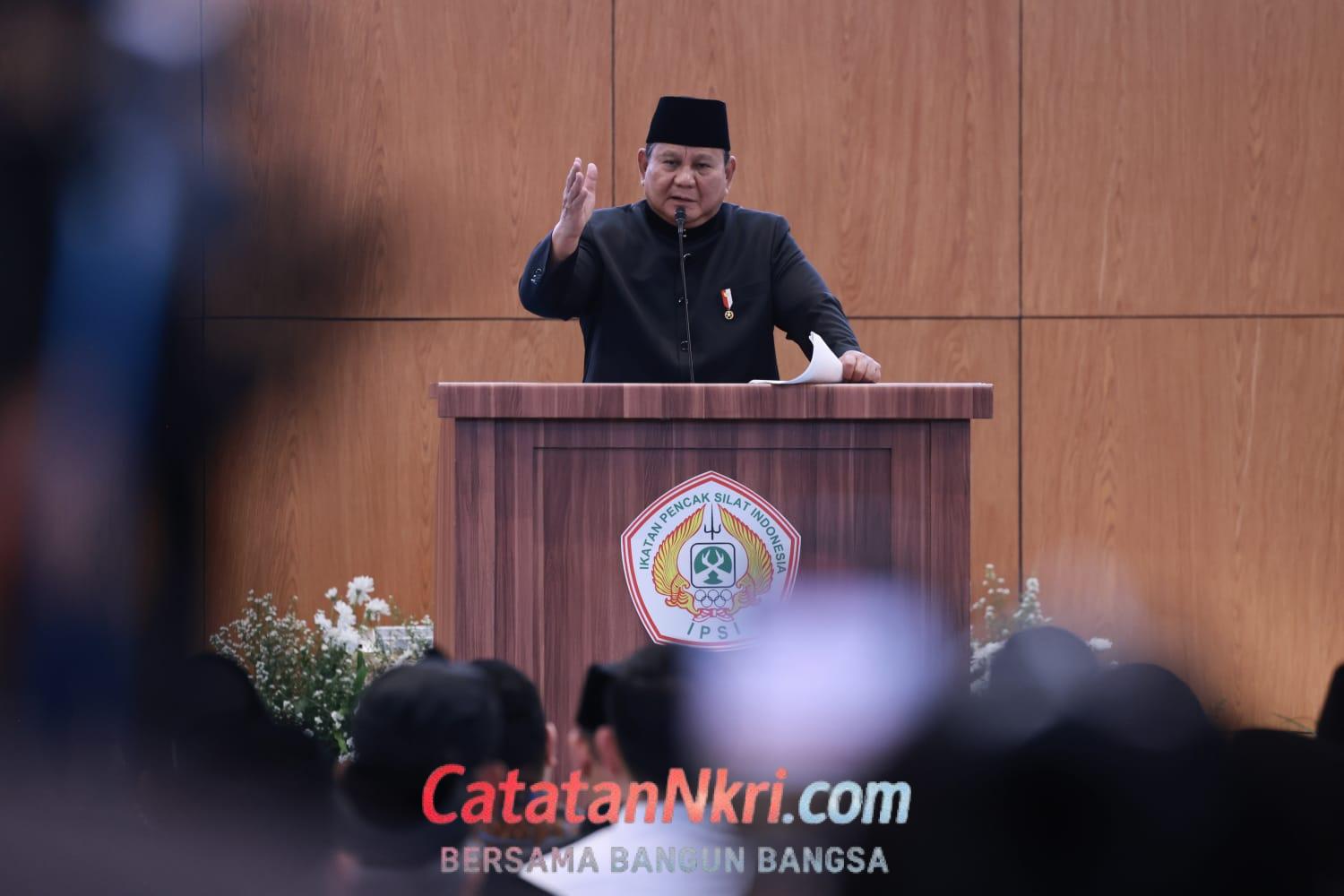 Selain itu, Prabowo juga menyampaikan rasa bangganya terhadap prestasi atlet pencak silat Indonesia yang disebutnya telah mengharumkan nama bangsa di ajang internasional. Hal itu dibuktikan dengan raihan medali yang disumbang atlet pencak silat selama ini.