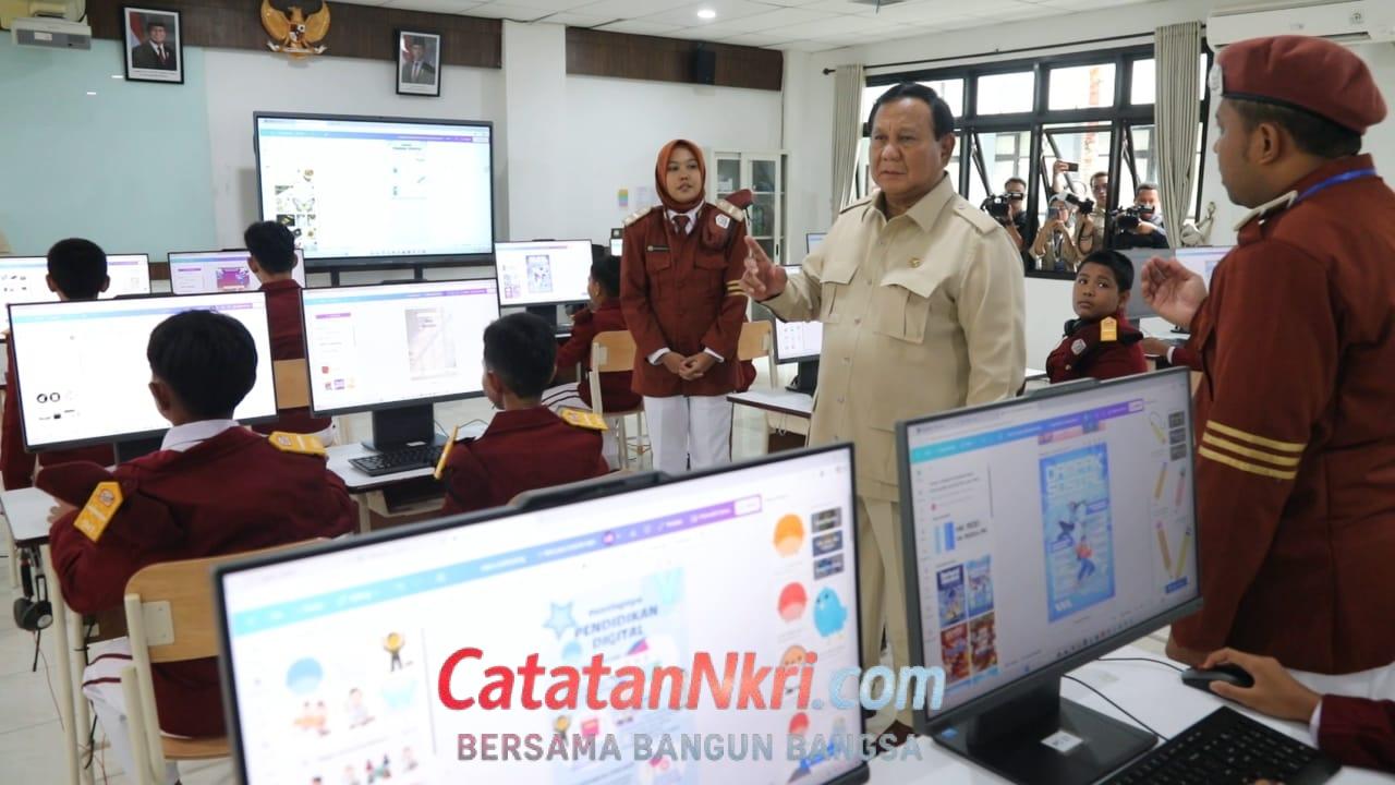 Selanjutnya, Prabowo kembali meninjau ruang komputer dan menyapa siswa-siswi. Saat ini, sistem pembelajaran di sekolah rakyat didukung dengan teknologi digital, termasuk learning management system dan laptop untuk siswa.