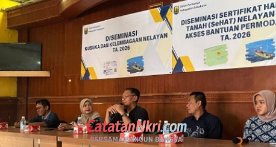 CatatanNKRI.Com, – Sukabumi, 5 Februari 2026 – Pemerintah Kabupaten Sukabumi melalui Dinas Perikanan melaksanakan kegiatan Diseminasi Sertifikat Hak Atas Tanah (SeHAT) dan Akses Permodalan di Desa Cikahuripan, Kecamatan Cisolok. Acara ini menjadi bagian dari upaya peningkatan kesejahteraan nelayan dengan memberikan kepastian hukum atas kepemilikan tanah serta membuka akses permodalan usaha perikanan.