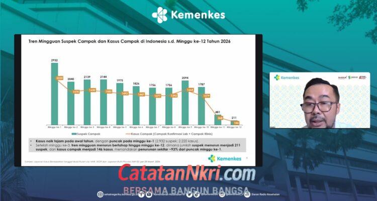 Kasus Campak di RI Terus Menurun Kasus Campak di RI Terus Menurun Hingga 93% Sejak Awal Tahun 2026 News|March 31, 2026by admin Jakarta — Kementerian Kesehatan (Kemenkes) mencatat penurunan drastis pada kasus penyakit campak