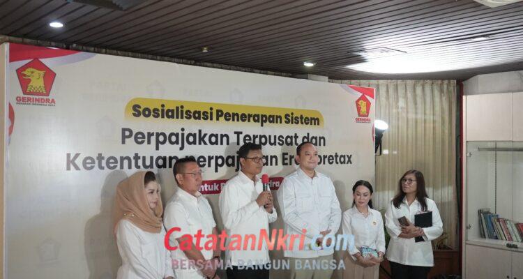 Sosialisasi Sistem Sosialisasi Sistem Perpajakan Terpusat dan Ketentuan Era Core Tax, Gerindra Ajak Kader Taat Pajak Parta Politik|January 19, 2026by admin Jakarta — DPP Partai Gerindra menggelar kegiatan Sosialisasi Penerapan Sistem Perpajakan Terpusat
